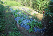 배추밭 아래는 고추밭인데 맨 뒷이랑 부분 김장무를 심었습니다. 우리밭에 파종한 무가 묵은 종자였다보니 발아가 미비하여 김장배추 구입때 진례시장의 종묘사에서 구입한 무 종자로 파종했더니 발아가 잘 되었으며, 자라기도 잘 자라고 있었습니다. 파종때 씨앗을 2~3개씩 넣었다보니 한 포기만 남겨두고 솎으면서 북주기를 했습니다. 솎음무김치가 맛있을 때입니다.