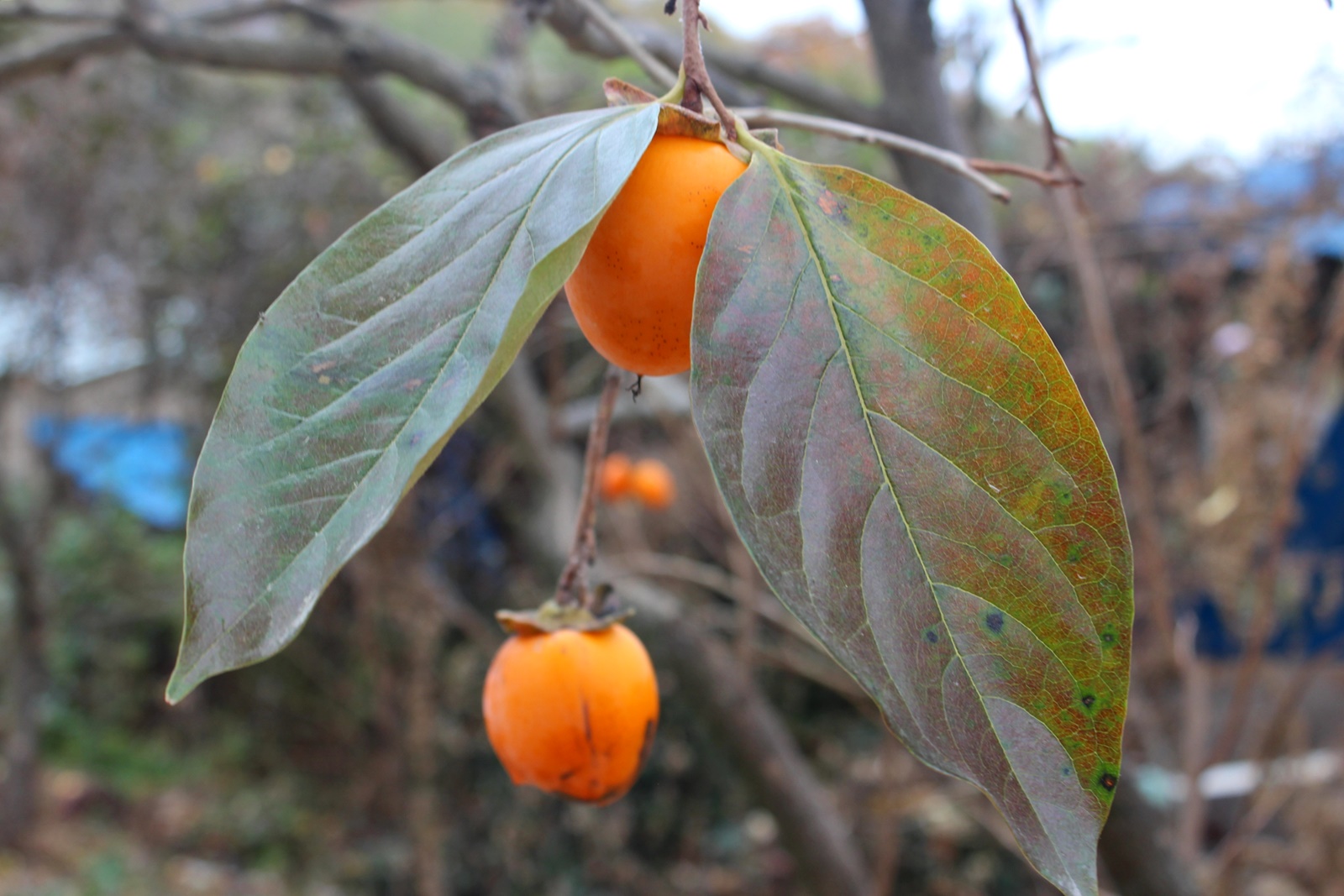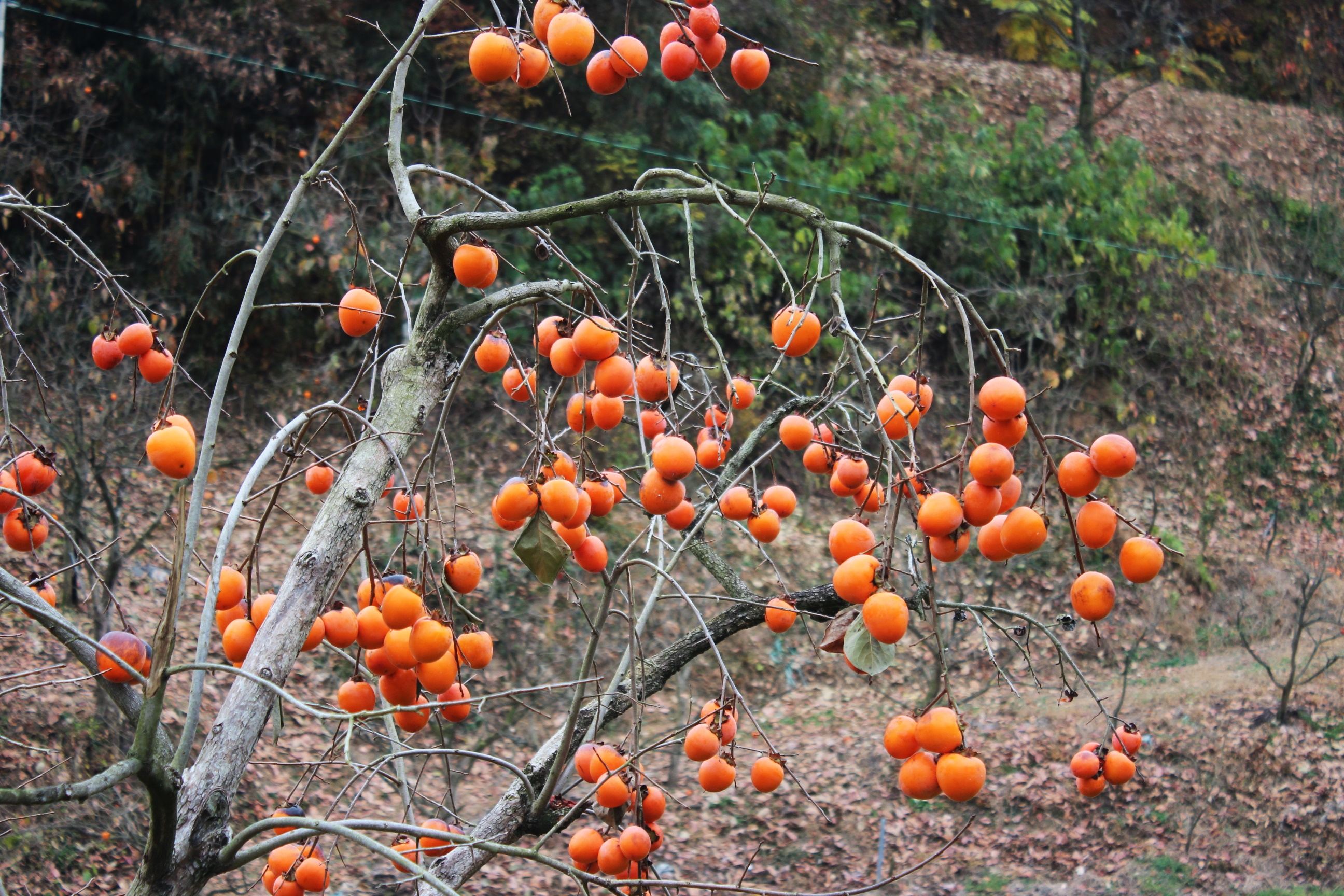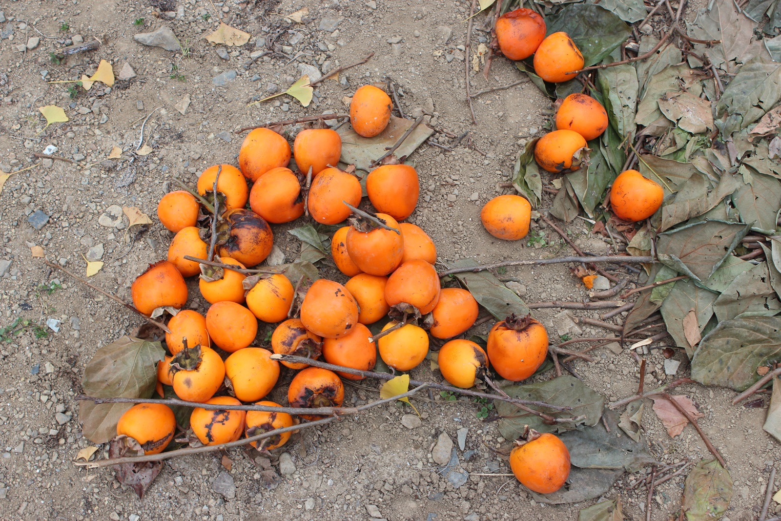 상처가 났거나 물러진 감이 감나무 아래에 많이 버려져 있었습니다.