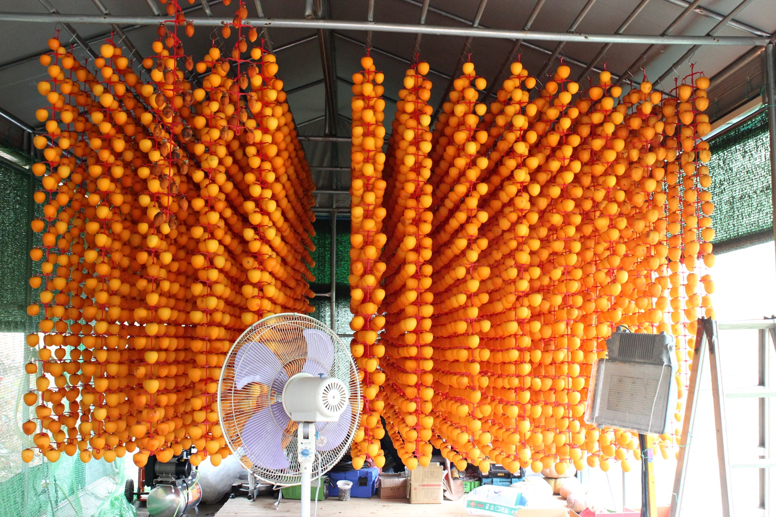 덕장이 작다보니 상주의 덕장처럼 선풍이가 천장에 달려있지않고 대형 선풍기 한 대가 있었습니다.