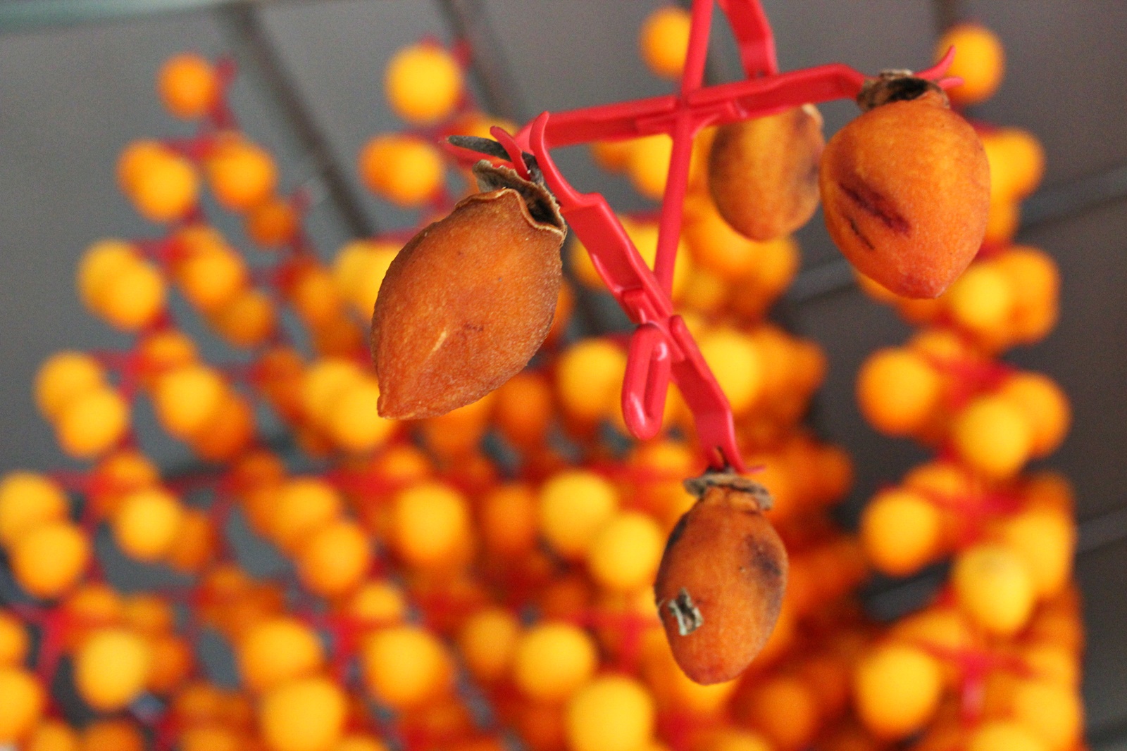 과일중에 유일하게 꽃받침이 있는 과일이 감인데 단감과 달리 곶감을 만드는 감은 꼭지부분에 자루가 조금있는데 이부분을 고리에 끼워서 말립니다.