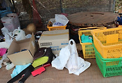 평상이 어질러져 있어 도시락을 펼 자리가 없었기에 파라솔이 있는 자리에서 점심을 먹었습니다. 일요일마다 배달시키는 것도 뭐 하고 하여 유부초밥과 정구지부침개, 컵라면으로 해결했습니다.