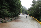 나무계단 몇 개를 오르니 평지가 나오고 곧 차도가 나왔습니다.