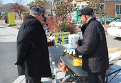 국화 한 송이 1,000원은 세월이 흘러도 변함이 없습니다. 추모객들은 한 손에 국화를 다른 한 손엔 노란풍선을 들기도 했습니다.
