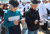 한글날, 일찍 텃밭으로 가서 풋고추 한 바구니를 따 두고 운동장으로 가니 벌써 행사가 시작되었습니다.