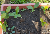 지난해 가을에 파종한 꽃양귀비와 수레국화의 잎입니다. 꽃양귀비는 텃밭 여기저기에서 싹을 냈기에 모아 심기도 했습니다.