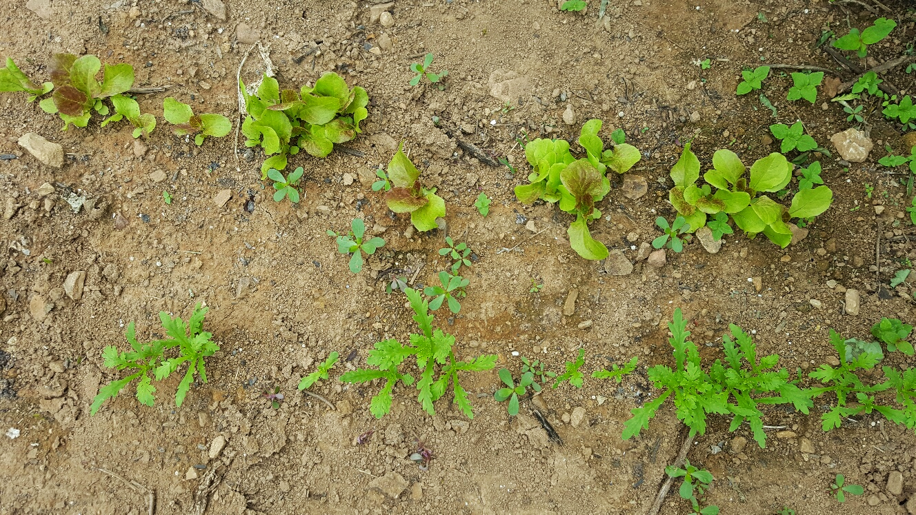 주변에 쑥갓과 상추가 자라고 있다보니 꽃을 좋아하지만 뽑아야 했습니다.