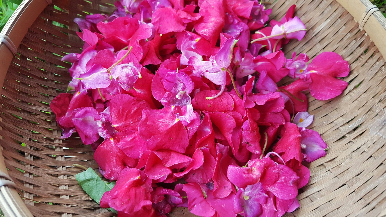 하여 봉숭아를 뽑아 다른 곳으로 옮겨 심으려 하니 뿌리가 억세어 부러졌습니다. 처음엔 버렸었는데, 참깨를 심다 말고 버리느니 꽃물을 들이자 싶어 봉숭아꽃을 땄습니다.