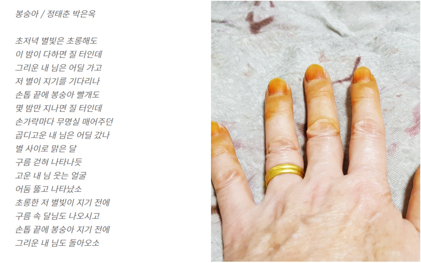 정태춘 박은옥의 봉숭아입니다. 노래는 펌했습니다.