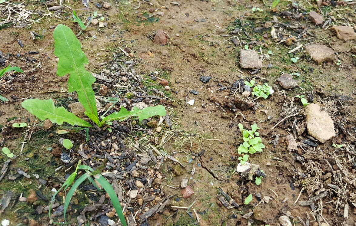 꽈리 앞쪽의 쌈채소밭입니다. 민들레는 쑥 자라 있습니다. 쑥 자란걸 보니 하얀민들레도 잡초네요.
