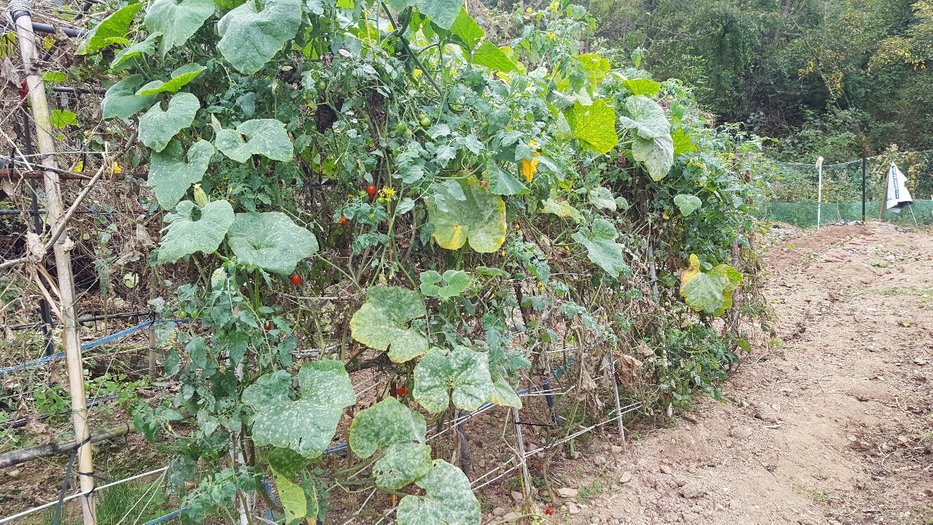 얼라아부지가 와서 걷은 고구마덩굴을 치우고 밭의 잡초 등을 뜯으며 토마토도 걷었습니다. 여름 내내 고구마순과 대추토마토가 효자였기에 아쉬웠습니다.