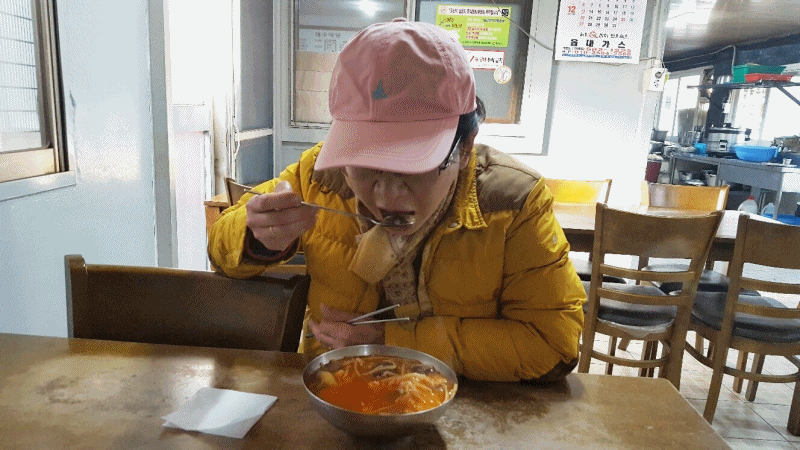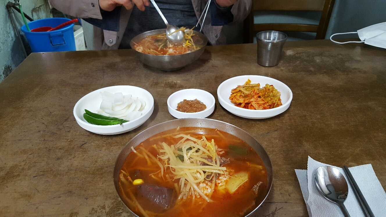 아침부터 설쳤더니 배가 고팠으며 한기도 들었습니다. 이 맛이야 소리가 나올 정도로 국물이 시원했습니다.