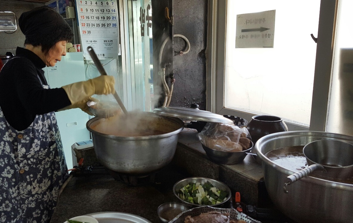 할머니는 주문이 들어온 국밥을 준비했습니다.