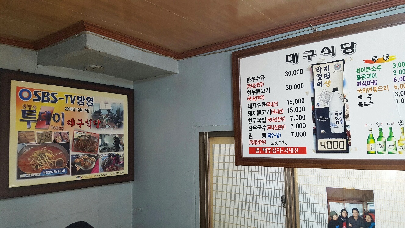 국밥촌은 한산했습니다. 줄을 서지 않고 대구 식당에 자리를 잡았습니다. 백종원 요리연구가가 다녀간 흔적이 출입문부터 있었습니다.