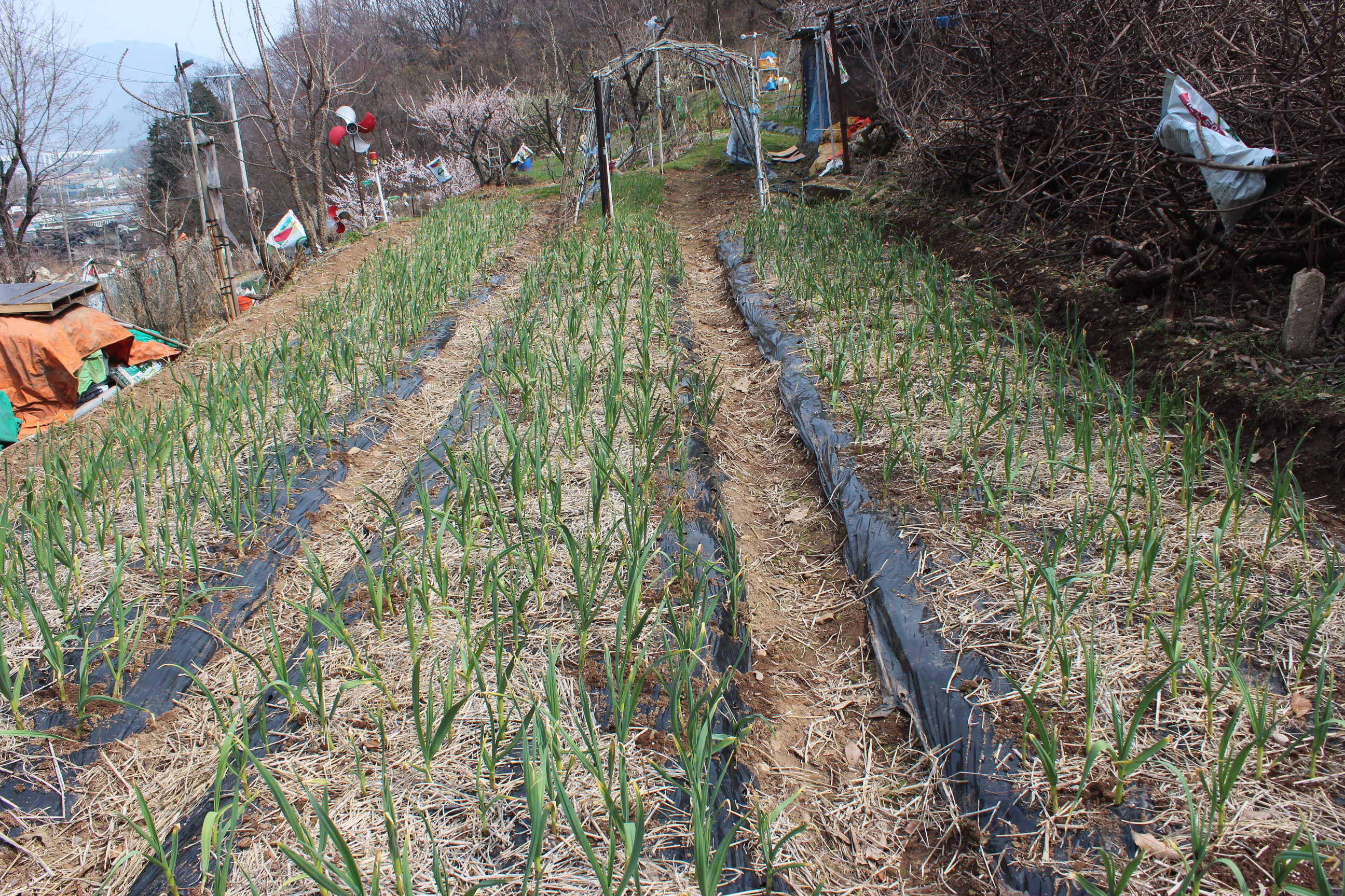 이 밭은 지난해 고구마를 재배했는데 잘 되었기에 마늘을 심었는데, 마늘에게는 흙이 맞지 않는지 무름병이 많이 들었으며, 멧돼지가 마늘 싹을 싹둑싹둑 잘라 버리기도 했습니다.