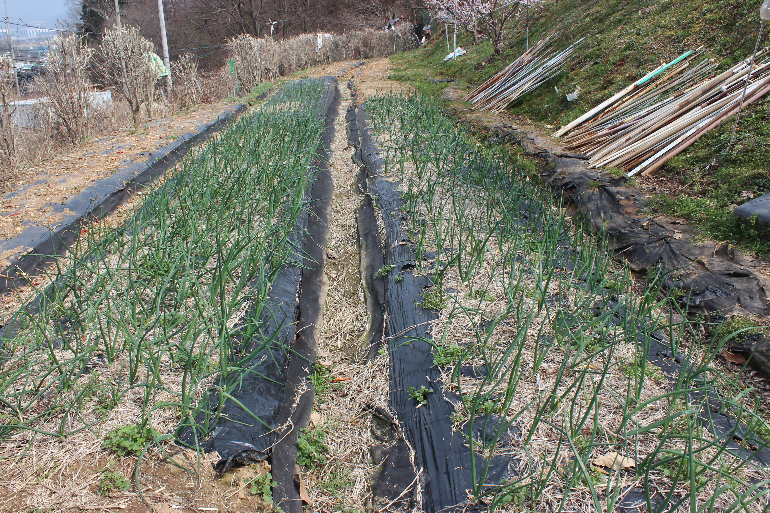 마늘밭과 양파밭 웃거름 시기가 지났습니다. 겨우내 얼었던 작물은 영양이 부족하기에 웃거름을 해야 하는데, 설날즘 얼라아부지가 웃거름(퇴비)을 한 번 했다고 했는데 퇴비가 보이지 않았으며, 비가 잦고 마늘이 무름병이 들어 웃거름을 하기로 했는데, 비닐 멀칭 사이에 잡초가 많아 우선 잡초부터 맸습니다. 기온이 높다 보니 잡초가 며칠 사이에 확 늘었습니다.