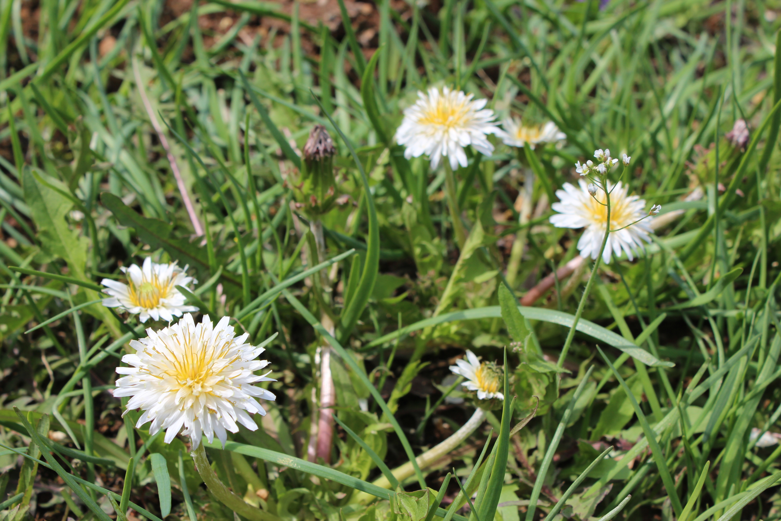 하얀 민들레와 제비꽃이 유독 많으며, 개갓냉이도 많습니다.