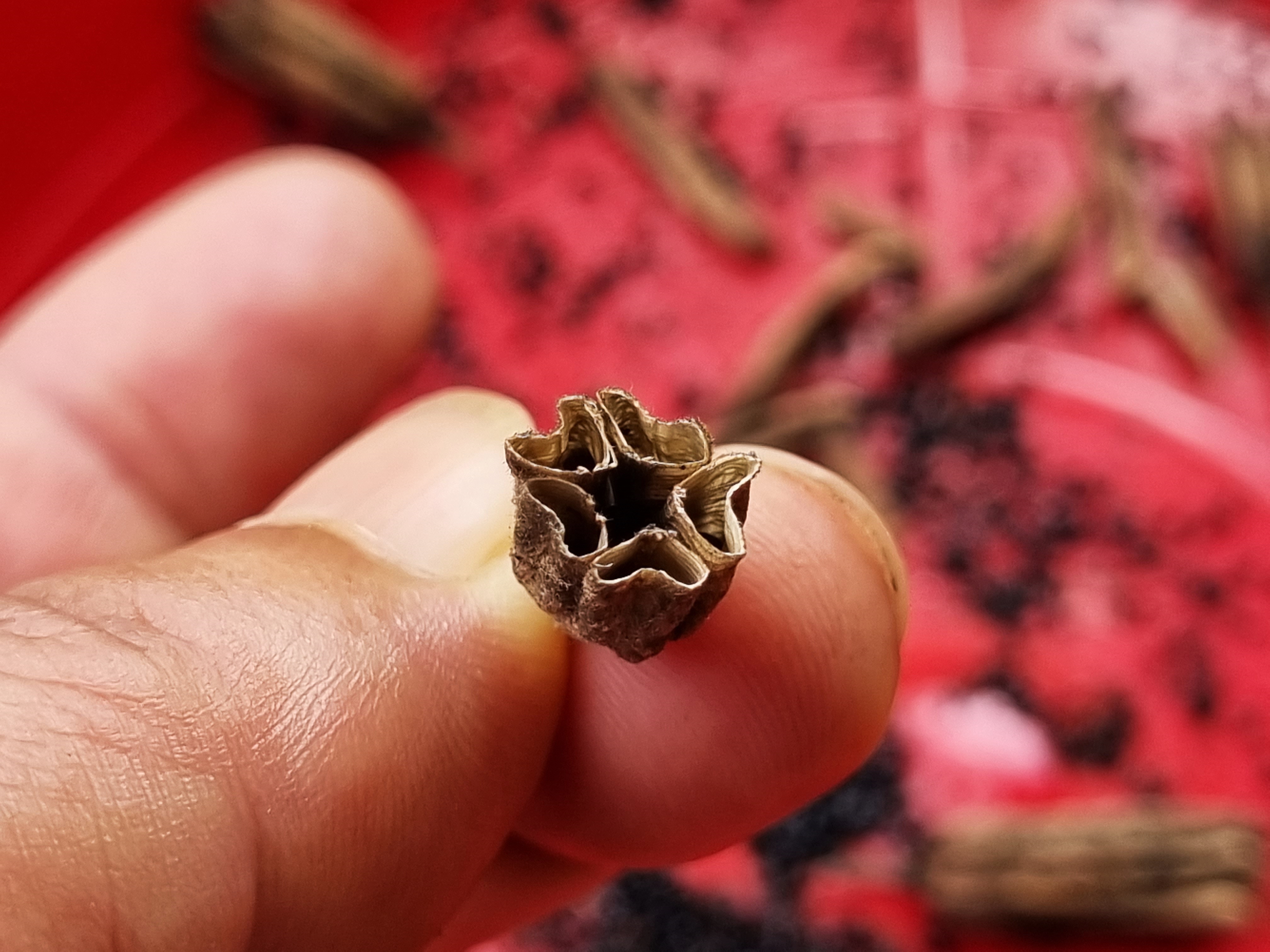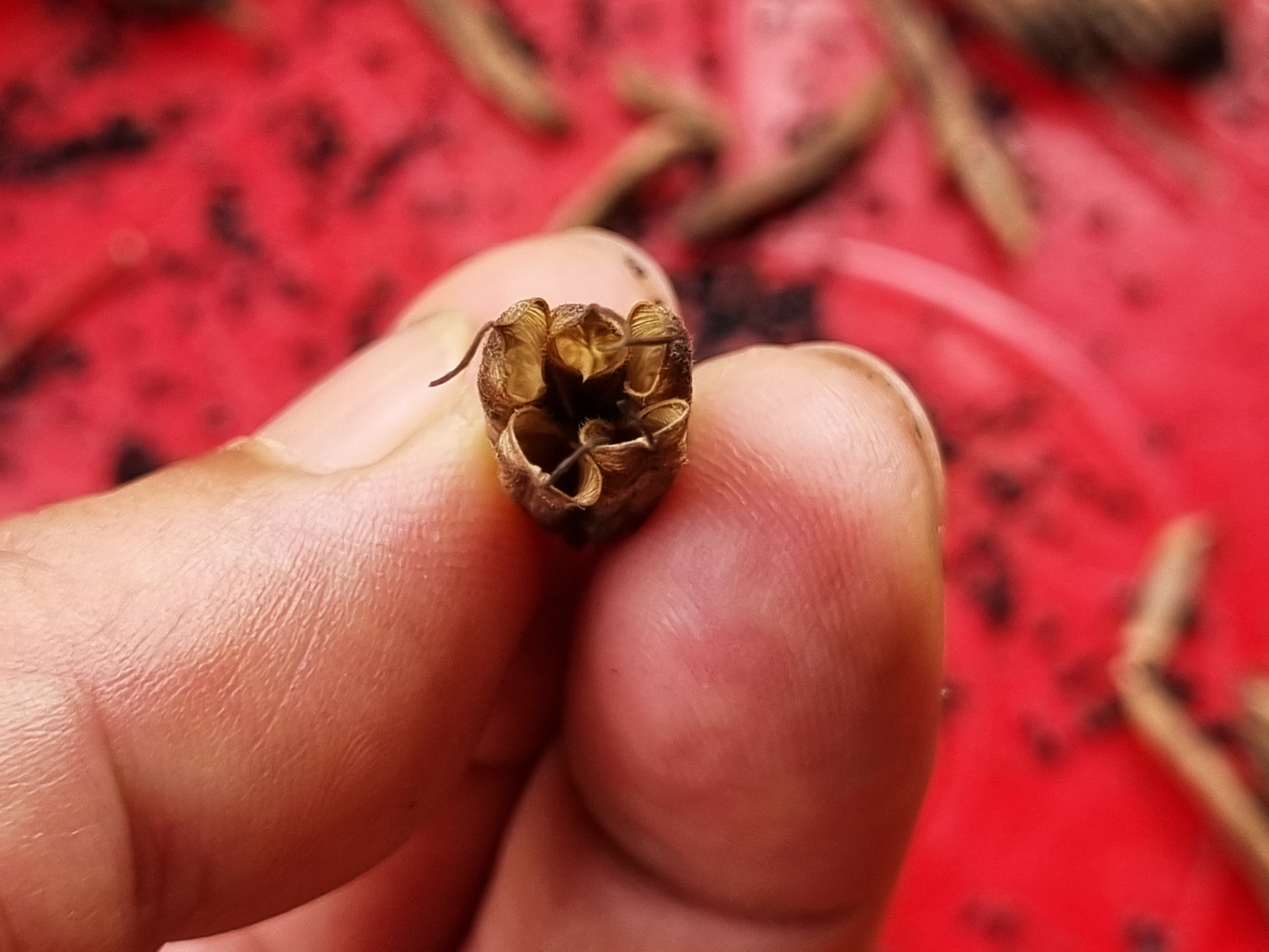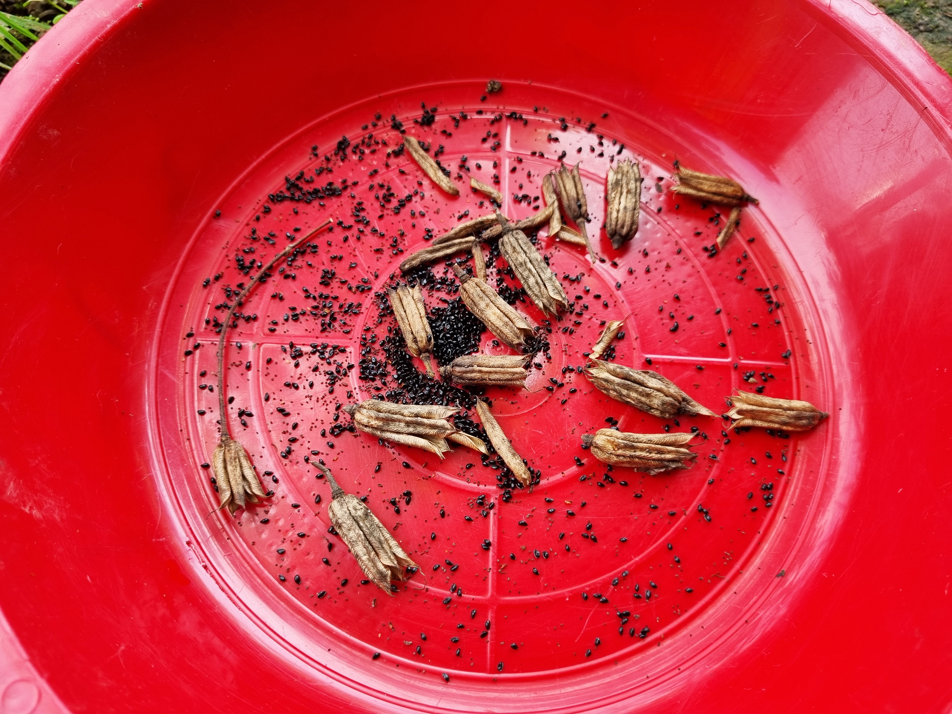 안국사에서 채종한 매발톱의 씨앗입니다. 씨앗은 작으며 윤기가 흐릅니다.