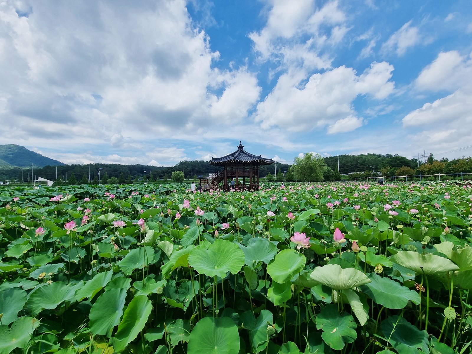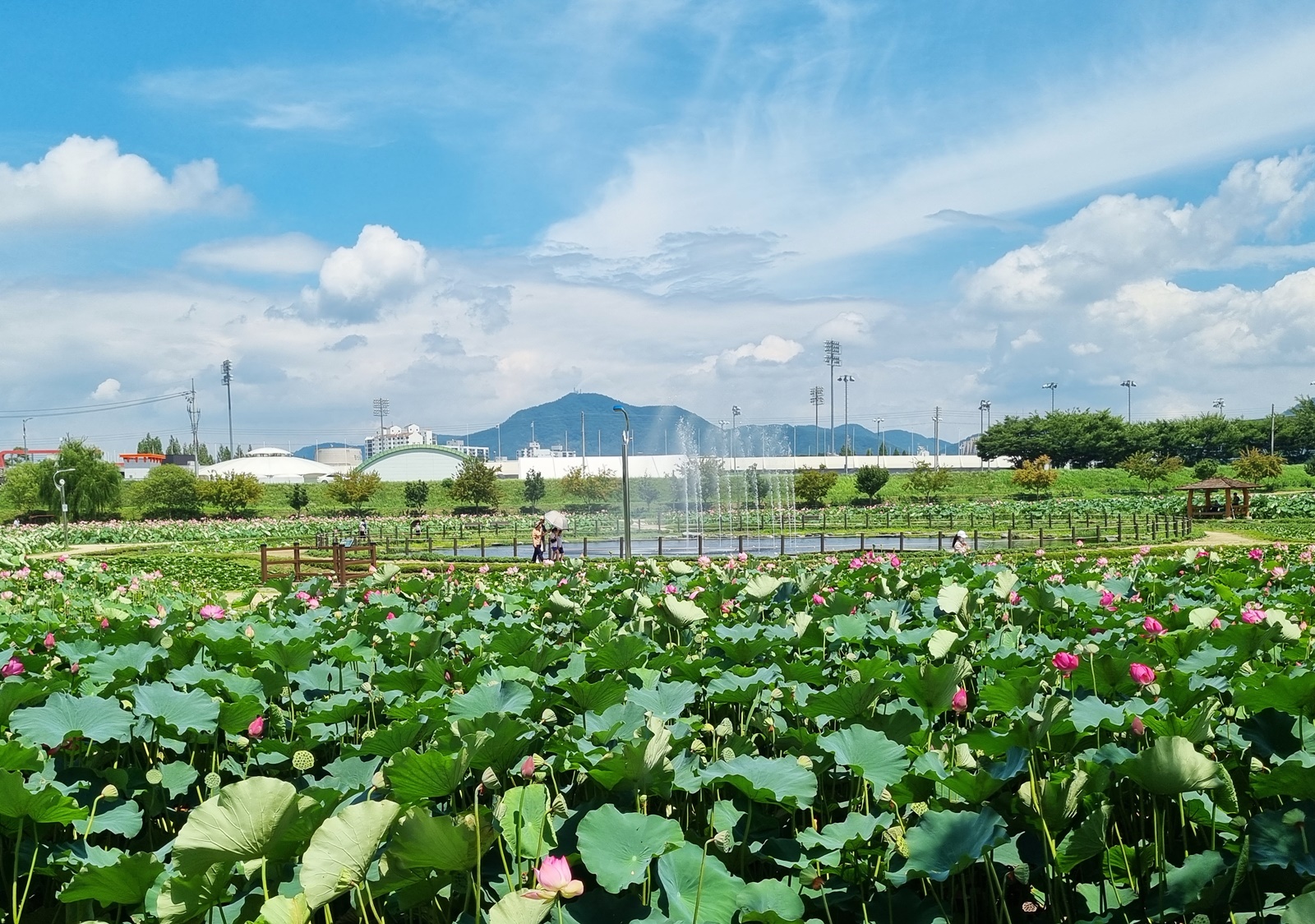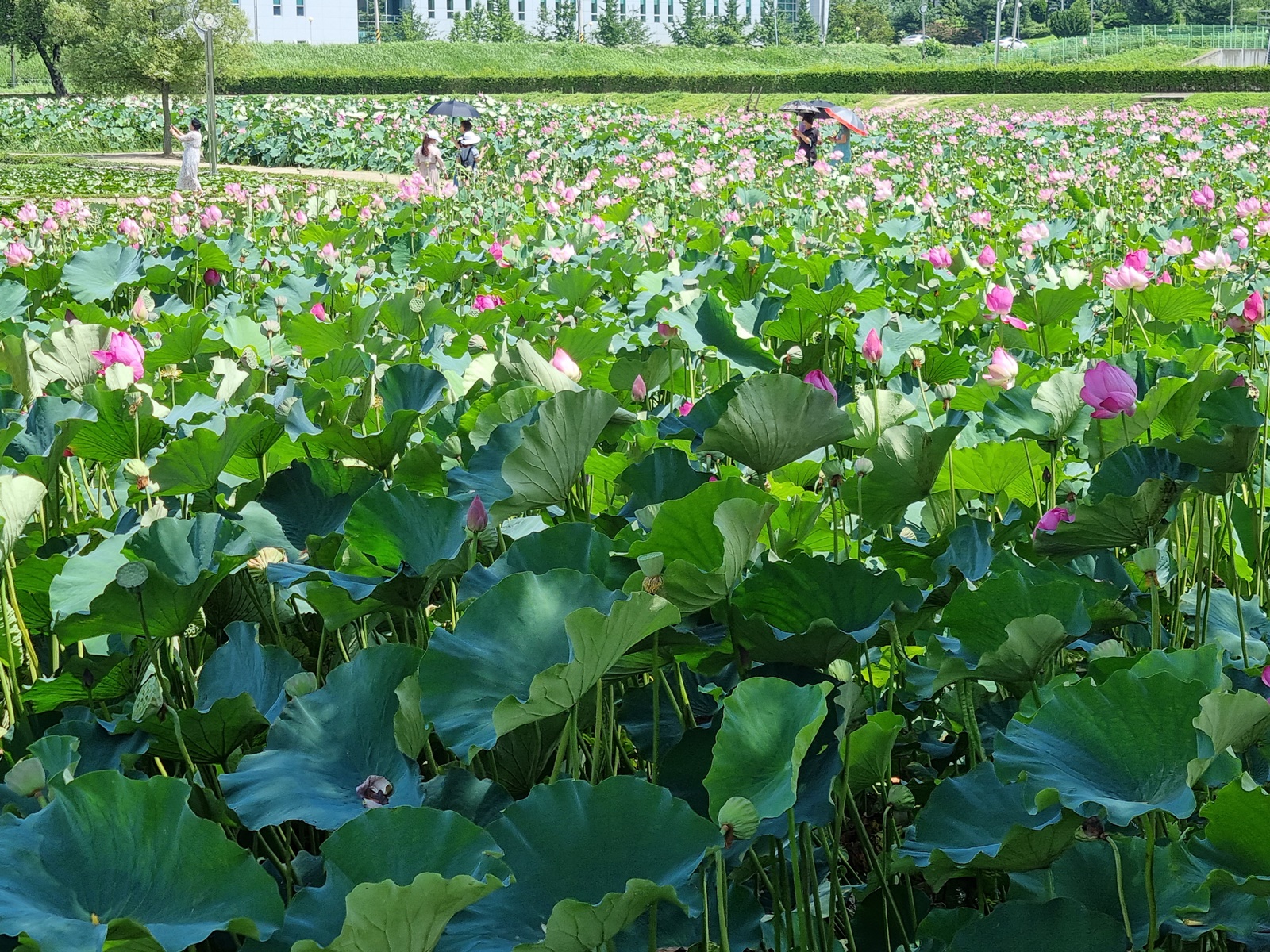 함안 연꽃테마파크의 아라 홍련지입니다. 연꽃은 법수 홍련보다 작은 듯하며 단아합니다. 연꽃도 많이 피었으며 나들이 객들도 많았습니다. 여름 최고의 꽃이 연꽃이지 싶습니다.
