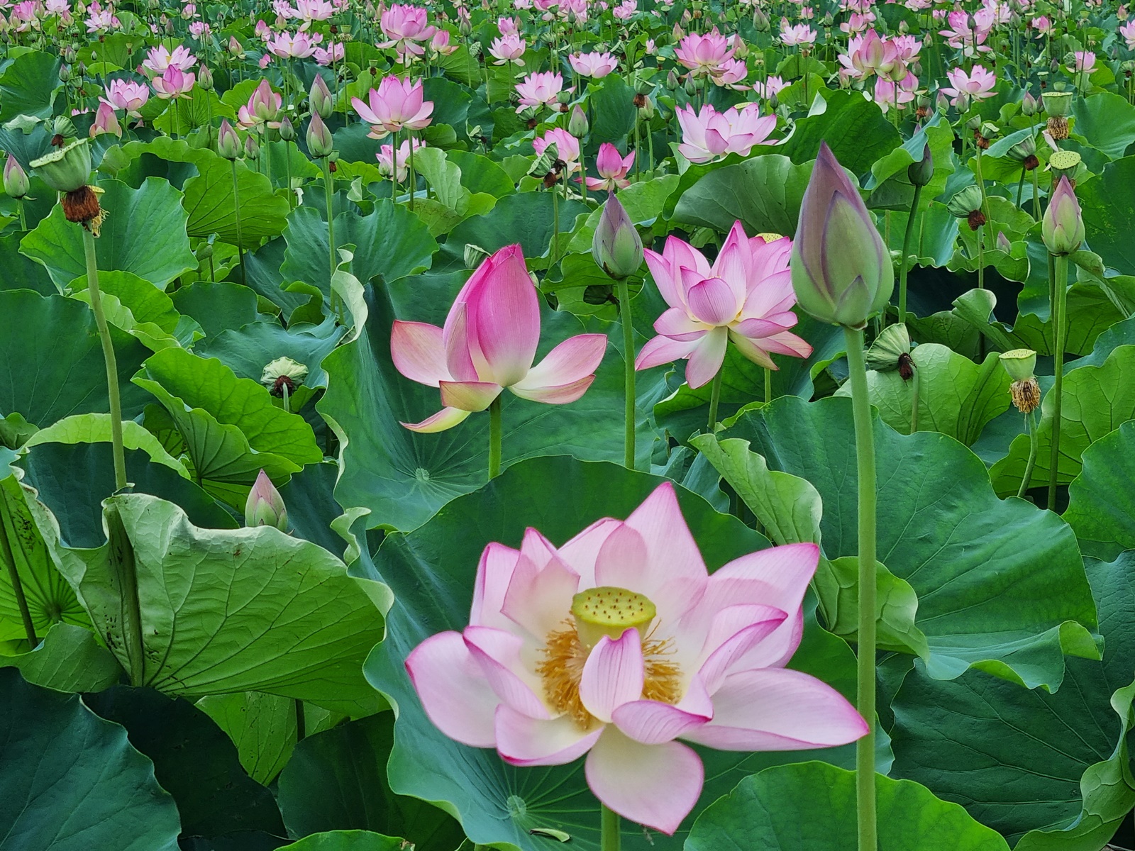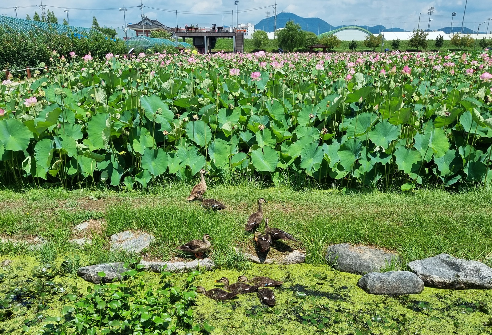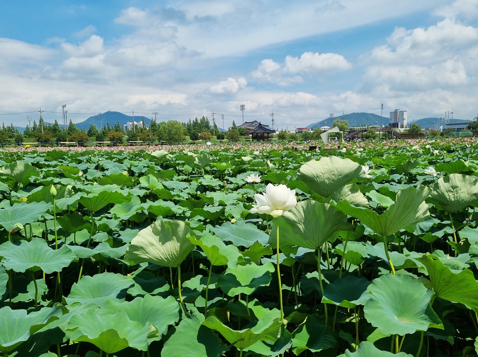 함안 연꽃테마파크의 아라 홍련지입니다. 연꽃은 법수 홍련보다 작은 듯하며 단아합니다. 연꽃도 많이 피었으며 나들이 객들도 많았습니다. 여름 최고의 꽃이 연꽃이지 싶습니다.