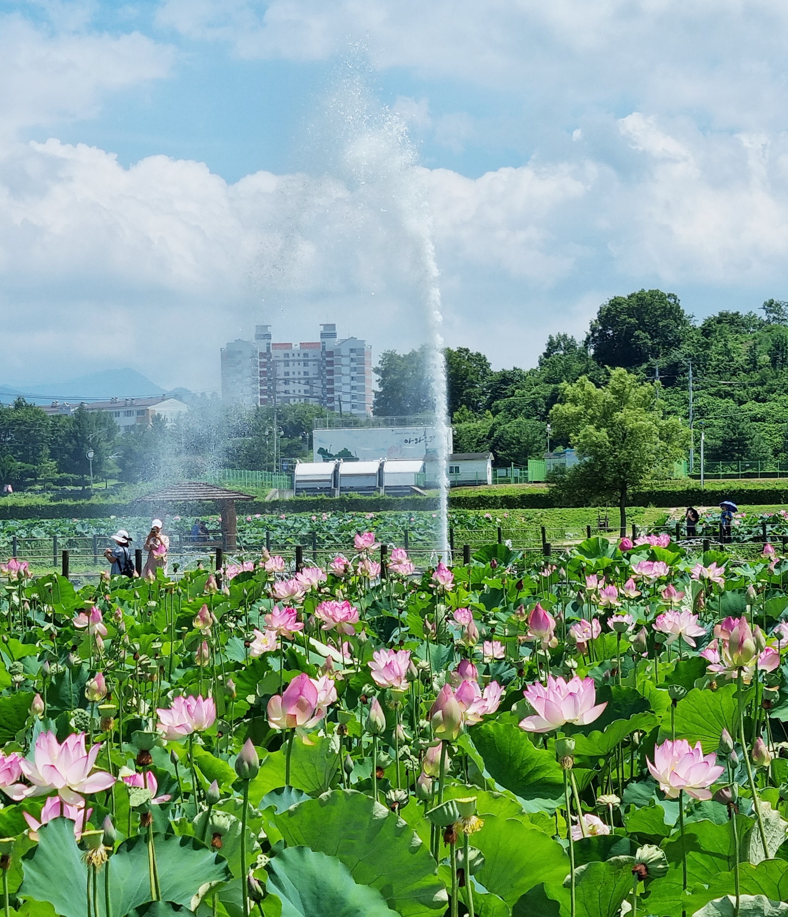 아침까지 폭우가 쏟아졌는데 언제 비가 내렸느냐는 듯이 화창하며 뜨거운 날씨였다보니 분수가 더 시원하게 보였습니다.