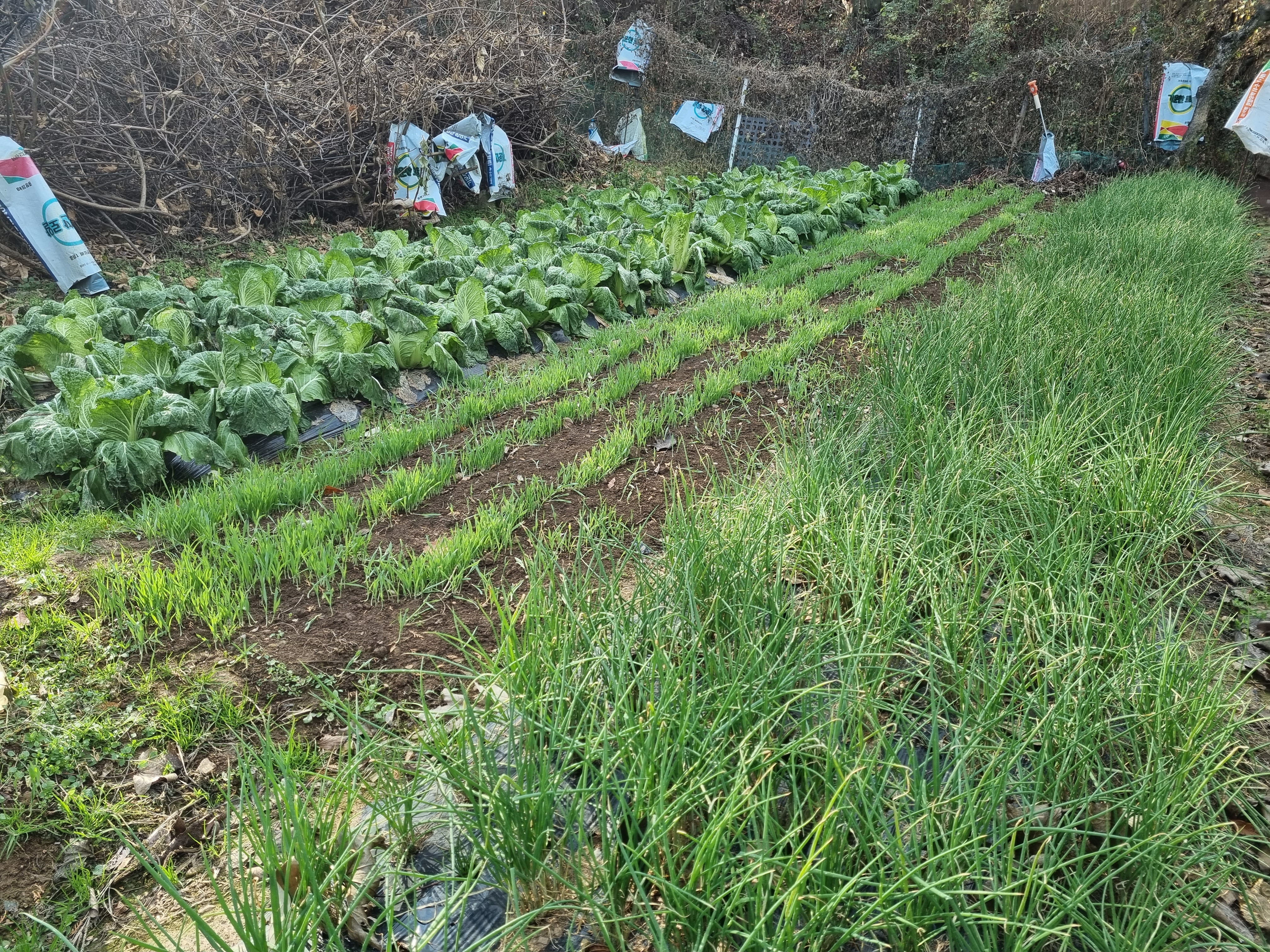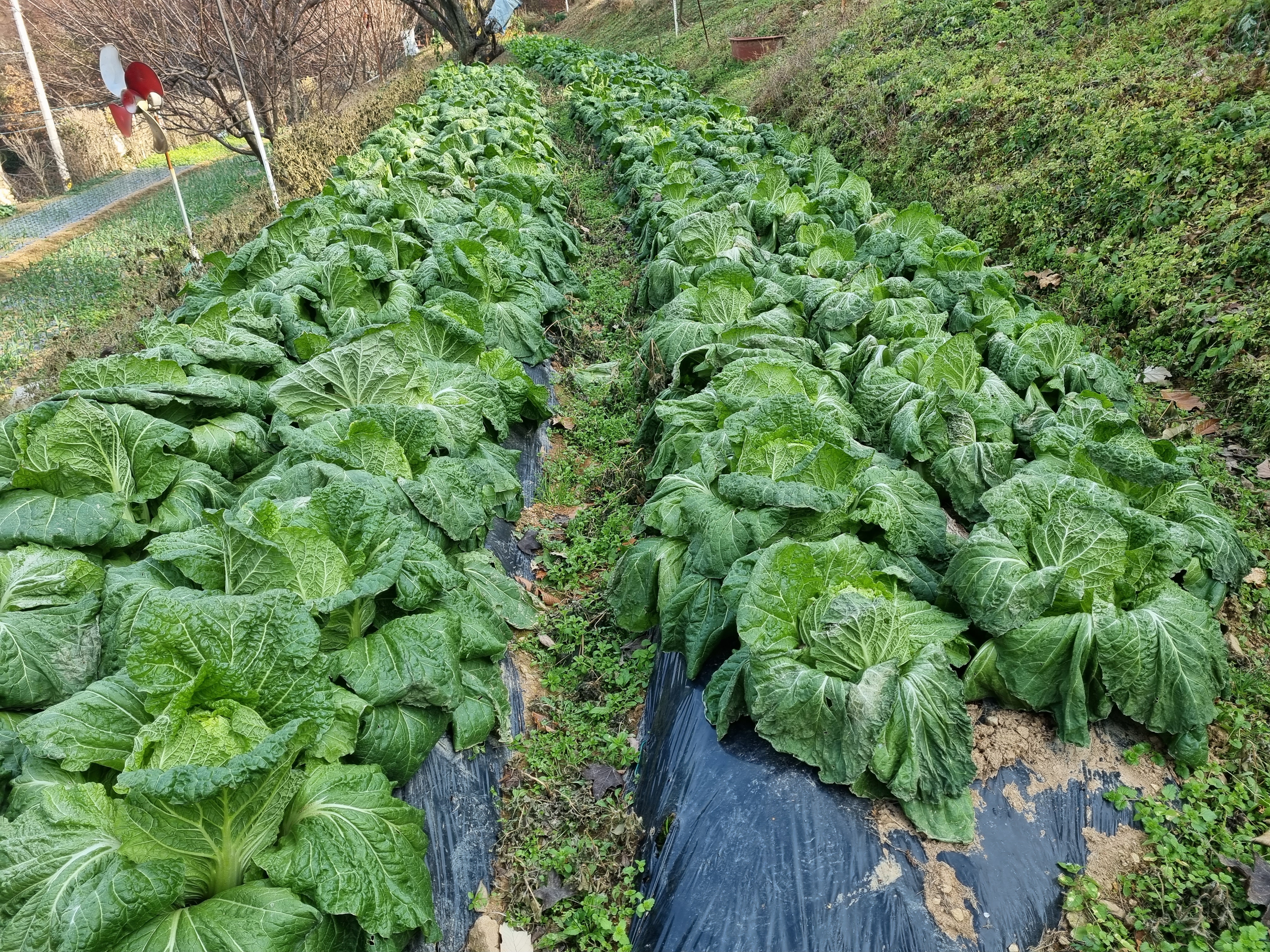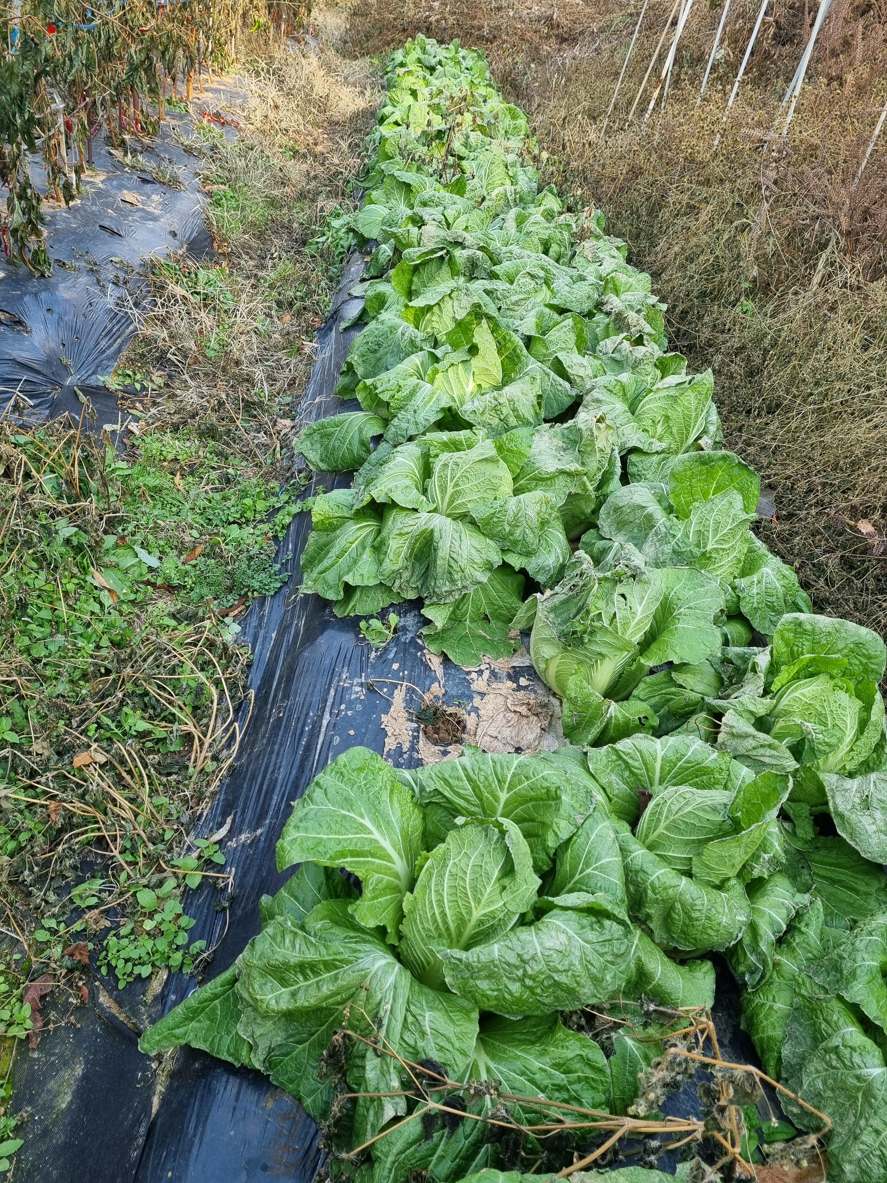 쪽파와 보리옆에도 김장배추가 있으며, 고추밭 뒷이랑에도 배추가 있습니다만 우리는 처음 올린 사진의 배추만 김장을 하기로 했습니다. 포기가 작긴하지만 약 170포기였습니다.