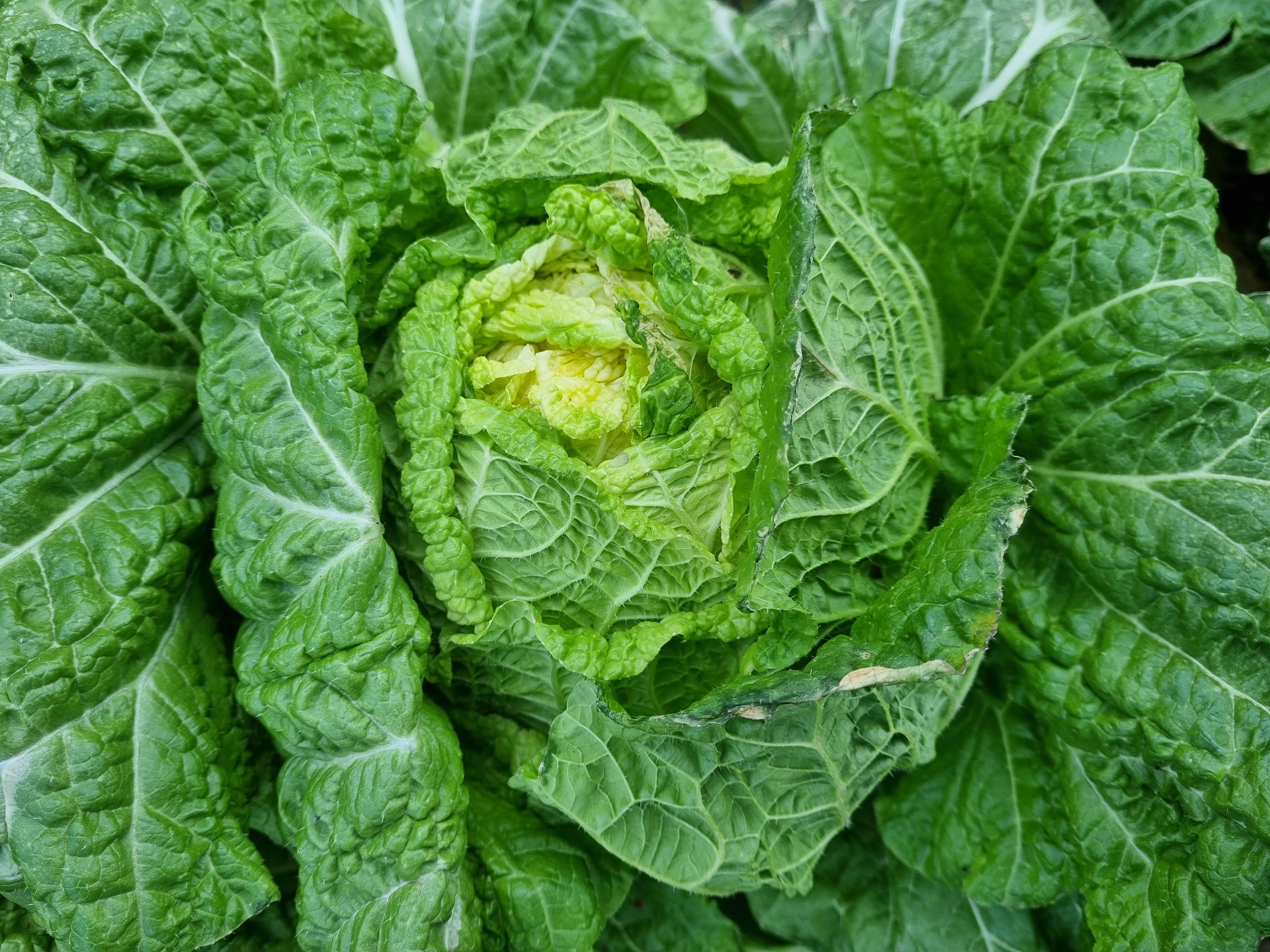 배추겉잎이 살짝 얼었습니다.