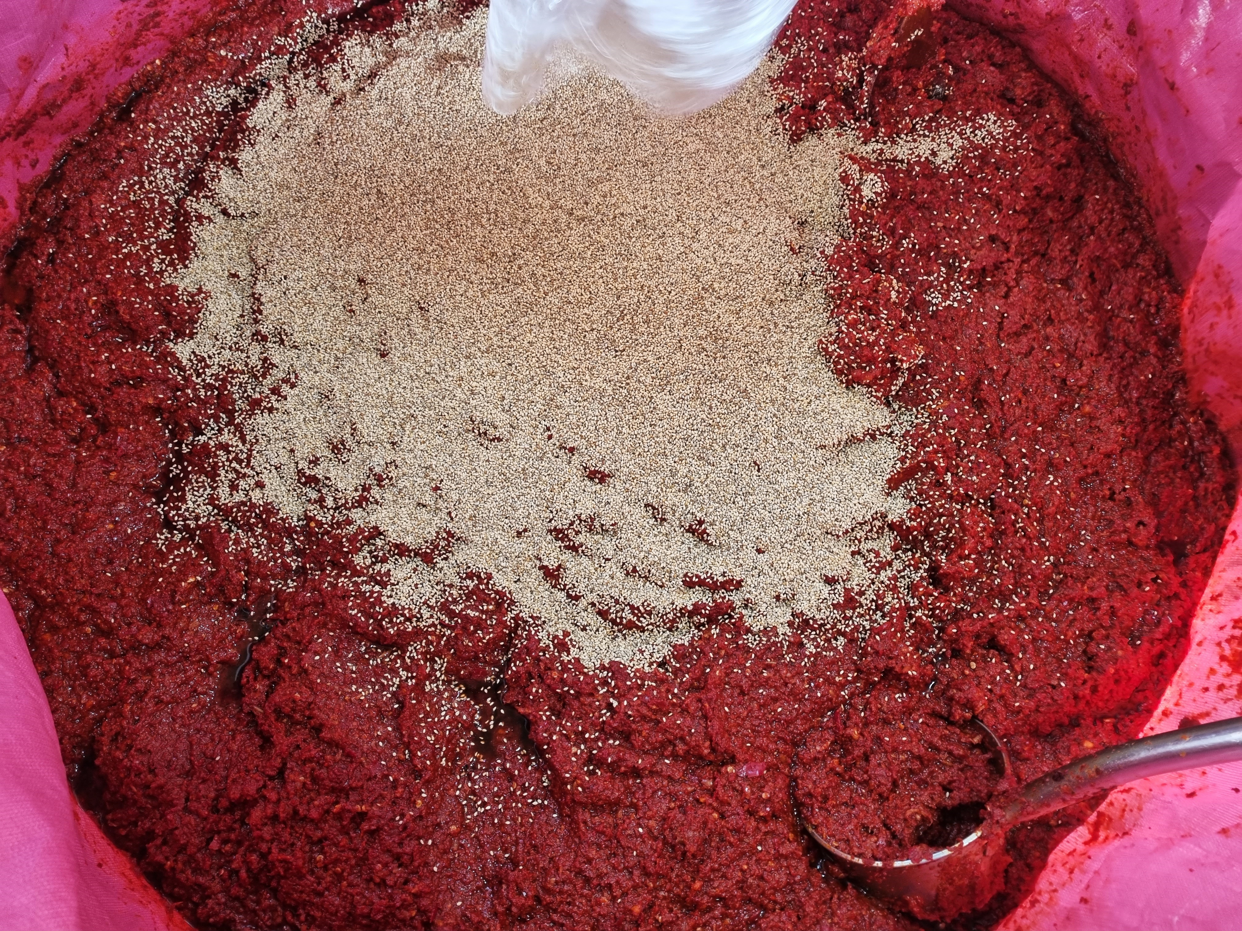 양념에 마지막으로 참깨를 쏟아부었습니다.
