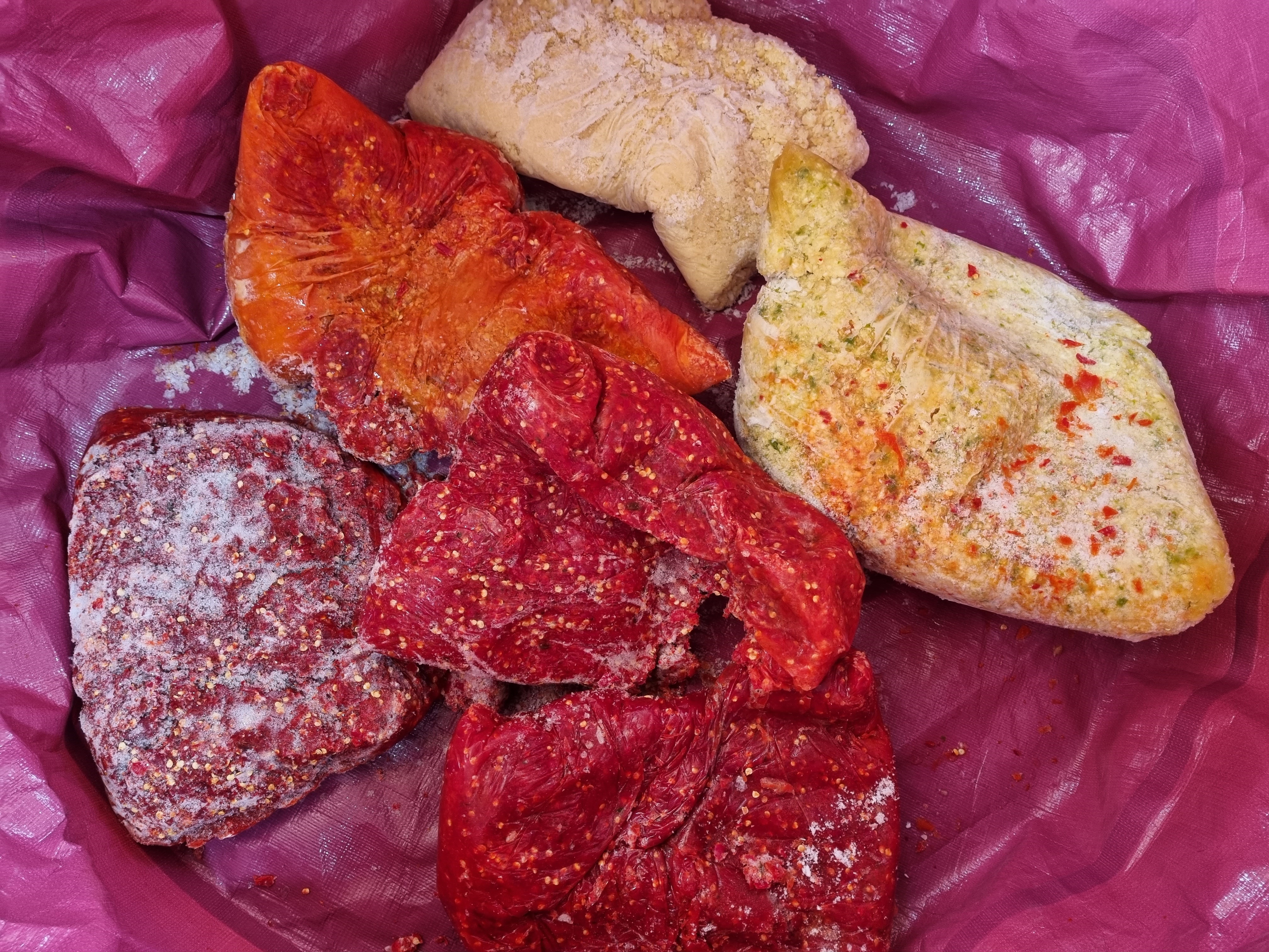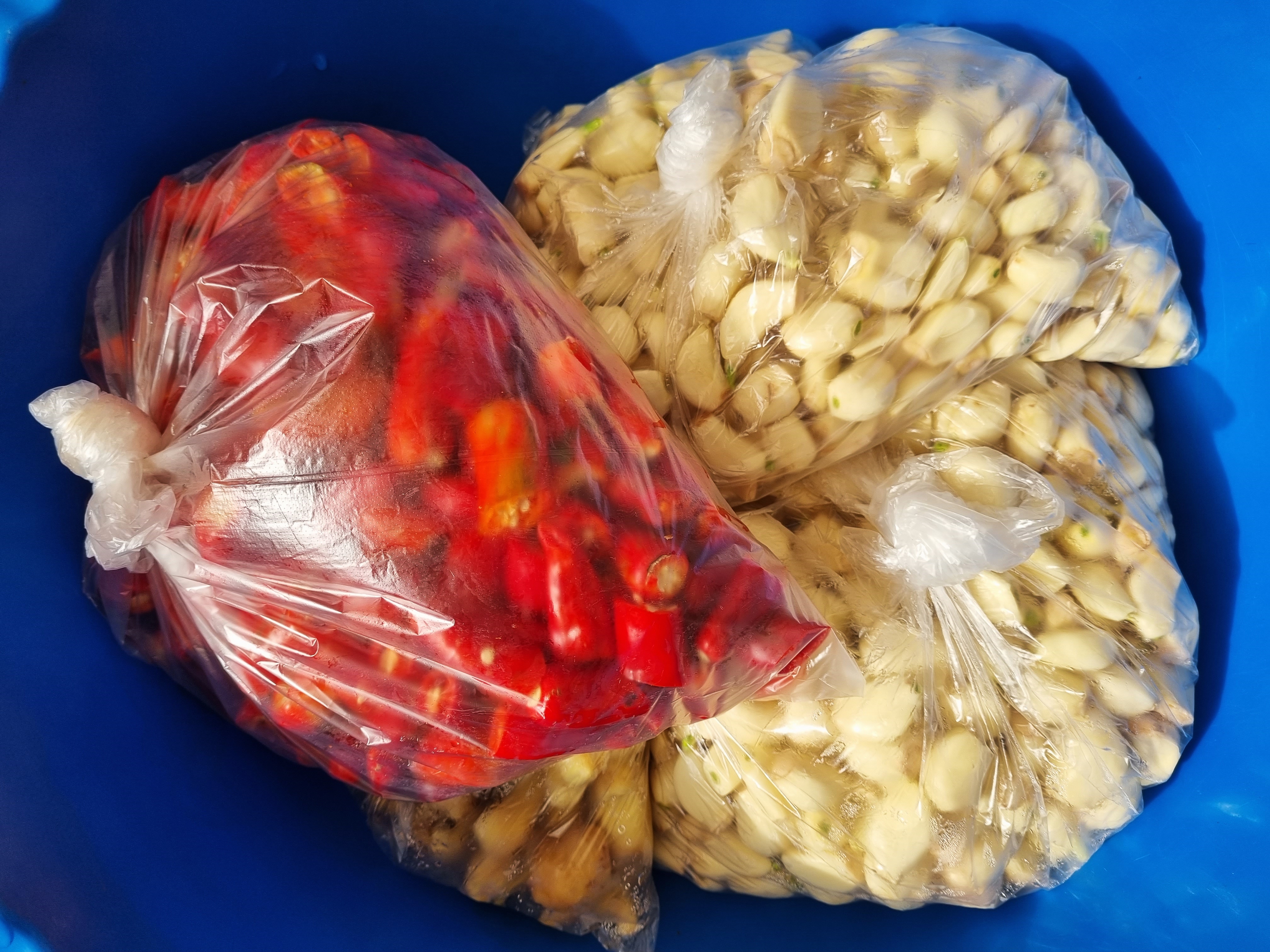 홍고추 수확시 갈아서 냉동실에 넣어둔 물고추와 간 마늘을 꺼내어 녹이는데 시간이 많이 걸렸습니다.
