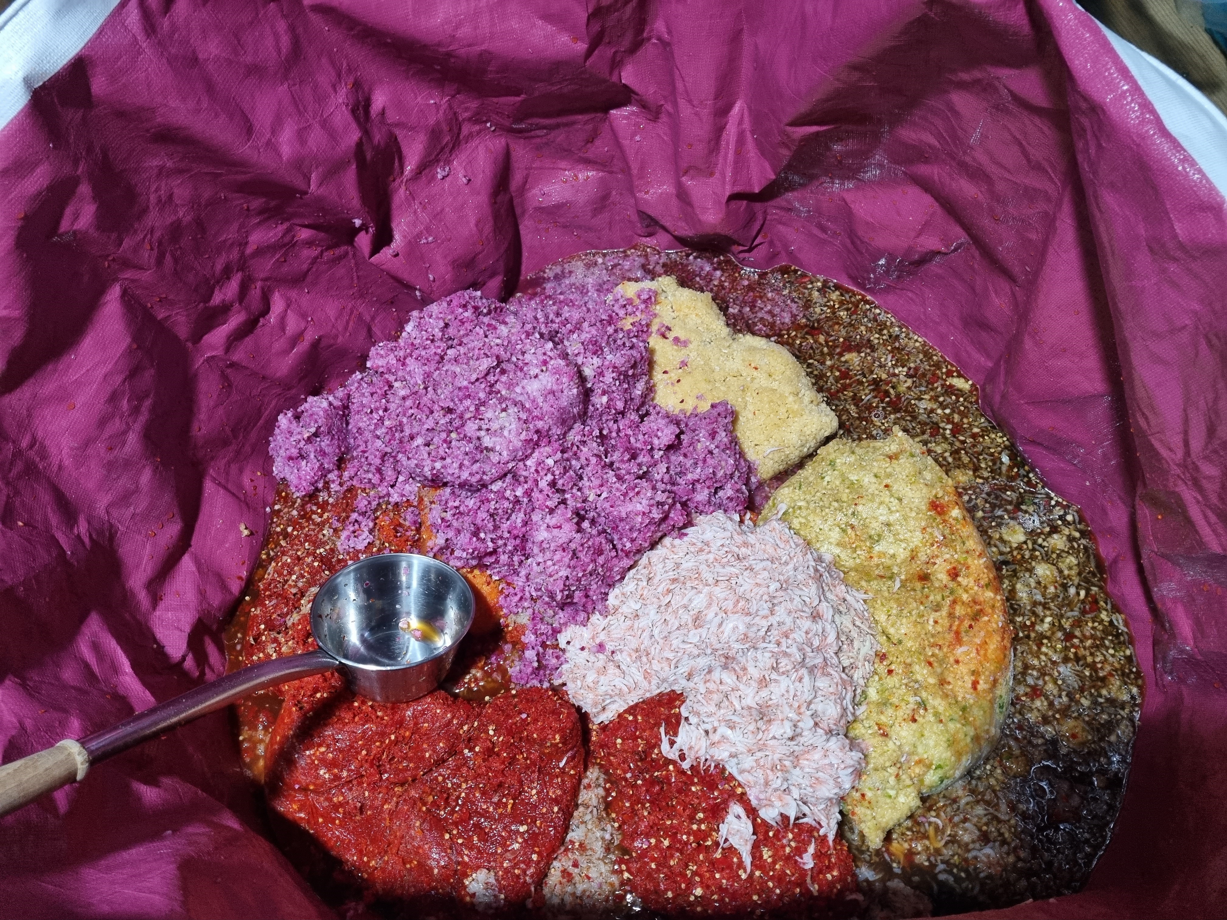 녹이는 김장 재료에 멸치액젓을 더 붓고 새우젓과 간 무를 넣어 살짤살짝 저었습니다.