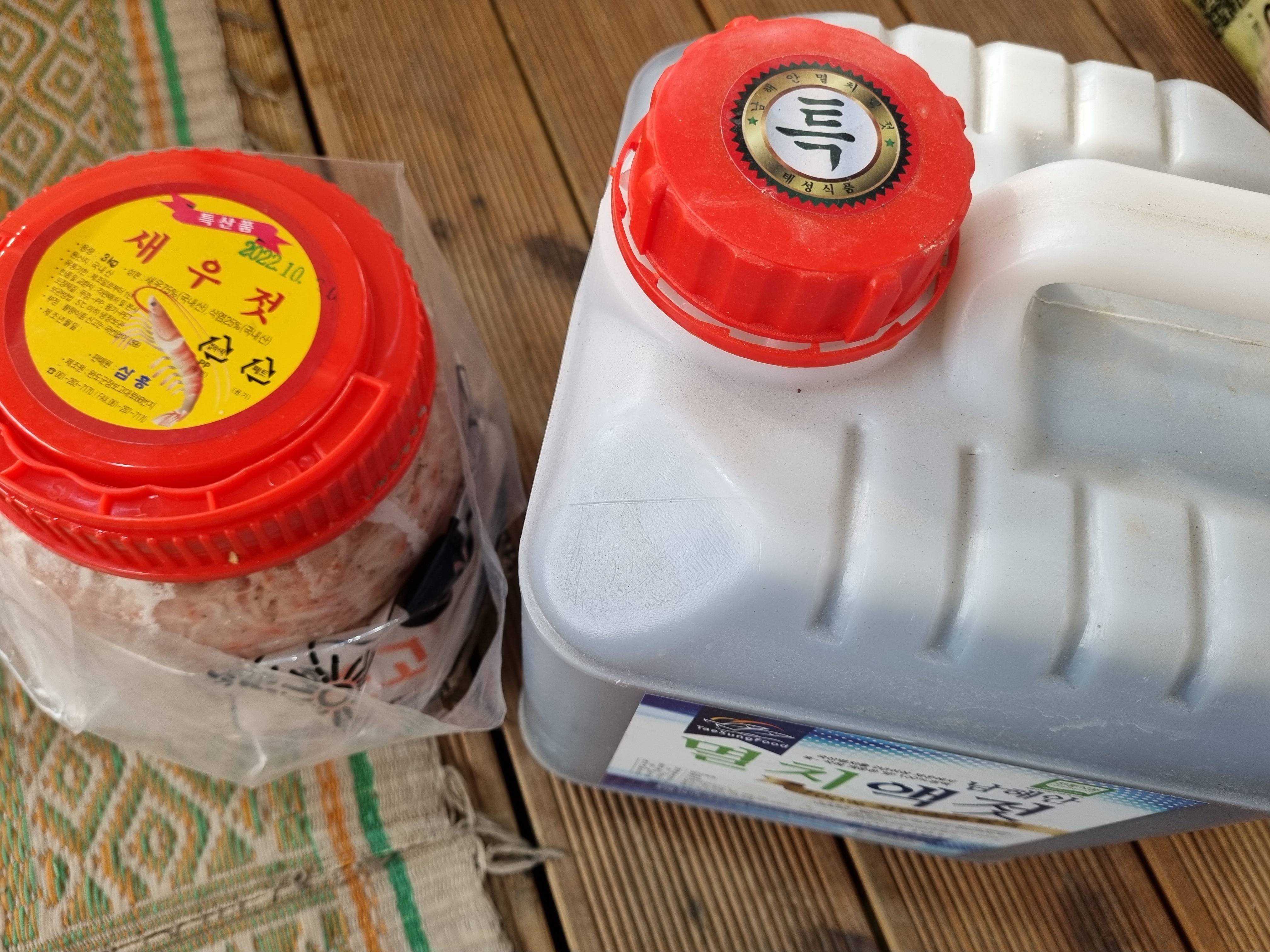 새우젓과 멸치액젓, 작년에 담근 매실액입니다.