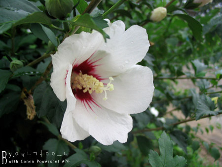 옛날부터 쓰여 오던 무궁화라는 한글명은 16세기부터 나타나는데 한자로는 목근화(木槿花)로 표기하고 있었습니다. 이로써 볼 때, 목근화 → 무긴화 → 무깅화 → 무궁화의 형태로 변했으며 여기에 뜻이 좋은 무궁화(無窮花)로 차음(借音)하여 표기하였음을 알 수 있다.
